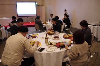 今回は、コース料理に加えてビンゴ大会やクイズ大会など、盛りだくさんのプログラム。