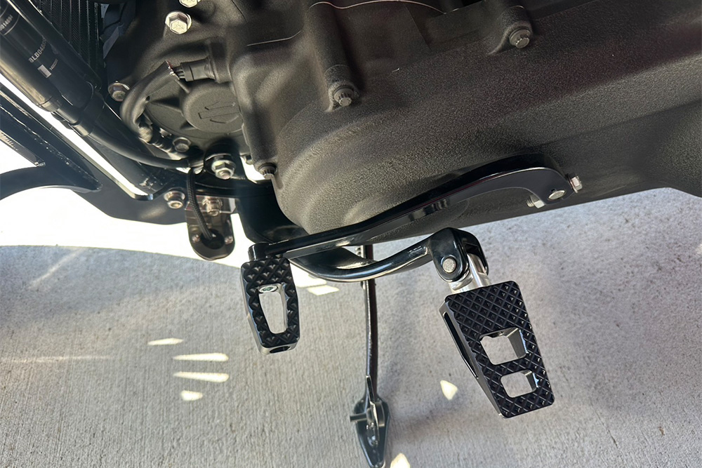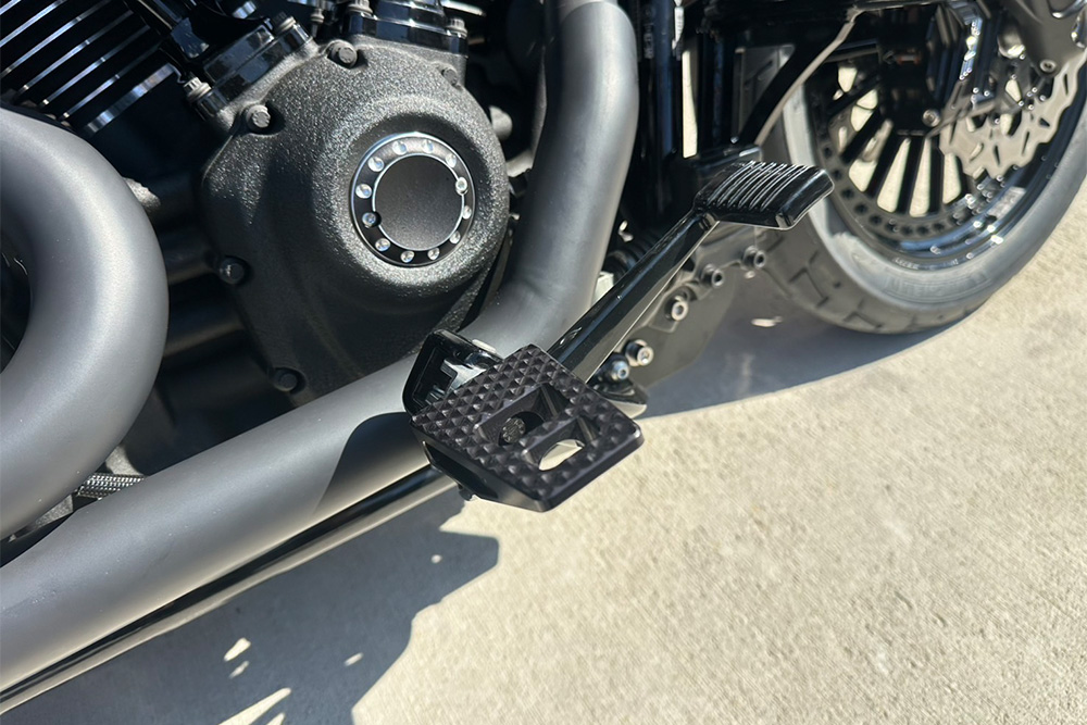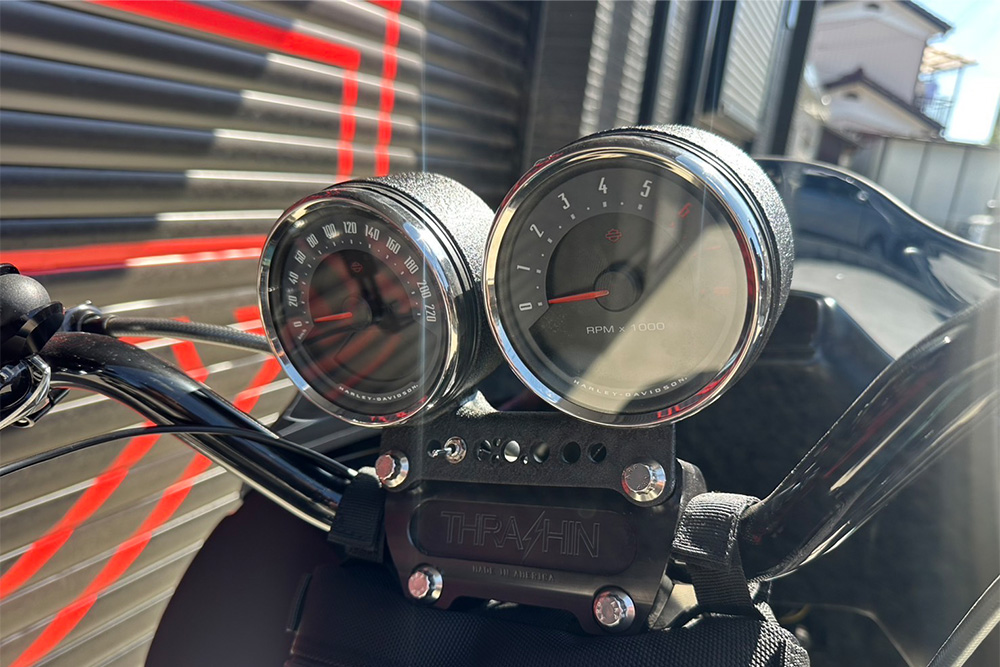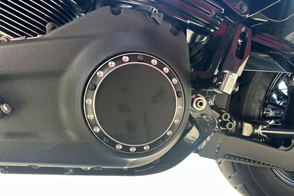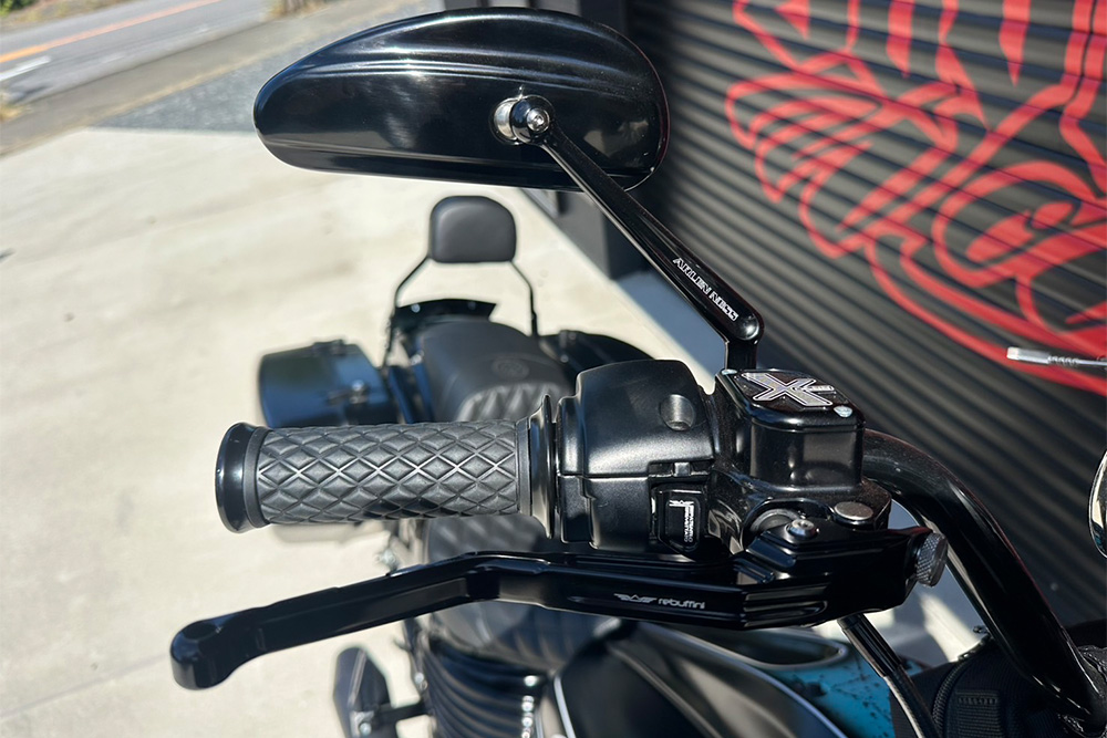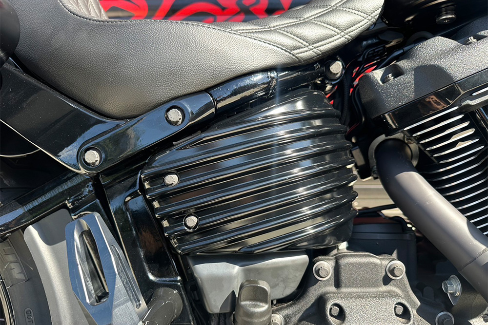 また、車体各部のボルトはバムコのプレミアムキットに交換済み。特に目立つ部分を厳選した内容のキットは車両のドレスアップに最適です。ツヤ無しブラックのボルトがチョイスされており、ローライダーSの純正カバー類と非常にマッチする仕上がりになっています。