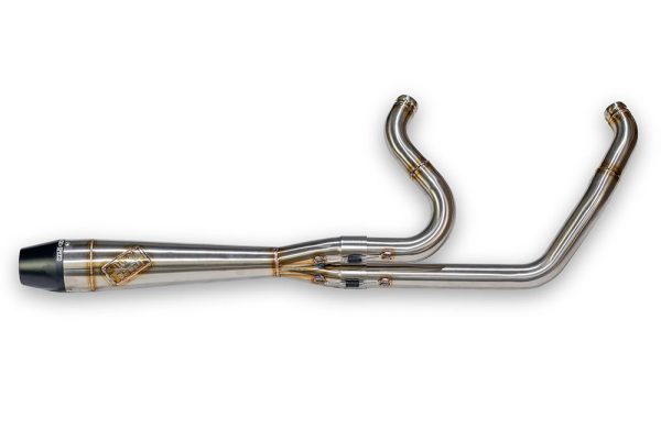 Intimidatorの魅力は、見た目や音だけではなく、パフォーマンスの向上です。1-7/8インチから2インチへ段付きになったヘッドパイプ、そこから高流量の集合部へつながります。排気効率を最大化しつつ最適な排圧を保つことを狙って設計されており、その結果は鋭いスロットルレスポンス、厚い中速域でのトルク、回転が上がっても伸びるトップエンドとして語られています。