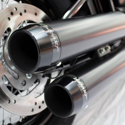 M8ソフテイルにさらなるパワーを引き出す2in1のショートフルエキゾースト。効率的な排気を促すステップドデザイン。フォアコン車、ミッドコン車ともに対応しています。こちらもチャンバー型高流量触媒カートリッジ “PCX” 搭載です。