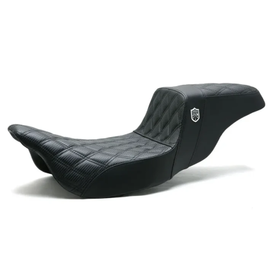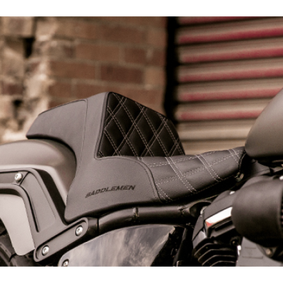 老舗シートブランドSaddlemenのフラッグシップ、Step up シート。18年以降のローライダー、スポーツグライドに適合するこちらのシートは、様々なスタイルにマッチするブラックの表皮に加え、ライダー座面がLatticeステッチで仕上げられたカスタムルックな一品です。
