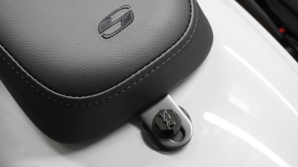 今回、シート固定には別売のTSCシートボルトを使用。ブラックの他に、ゴールド・レッド・クロムもラインナップされており、差し色としても楽しめます。小さなパーツながらシートまわりの印象を左右する存在感があります。