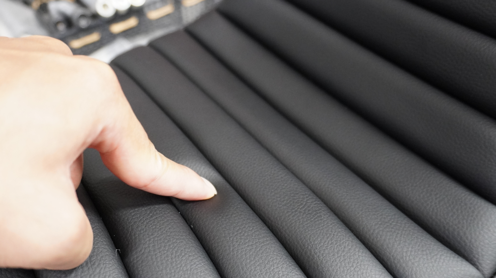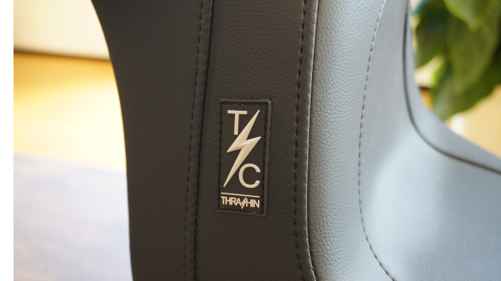 表皮デザインは“Smooth”と“Tuck & Roll”の2タイプから選択可能。こちらは“Smooth”デザインです。滑らかな質感の表皮は光の当たり方によって上品な艶が浮かび上がり、洗練された高級感を演出。両側面にはThrashinのラバー製ロゴが配置され、限定モデルならではの特別感を感じさせます。