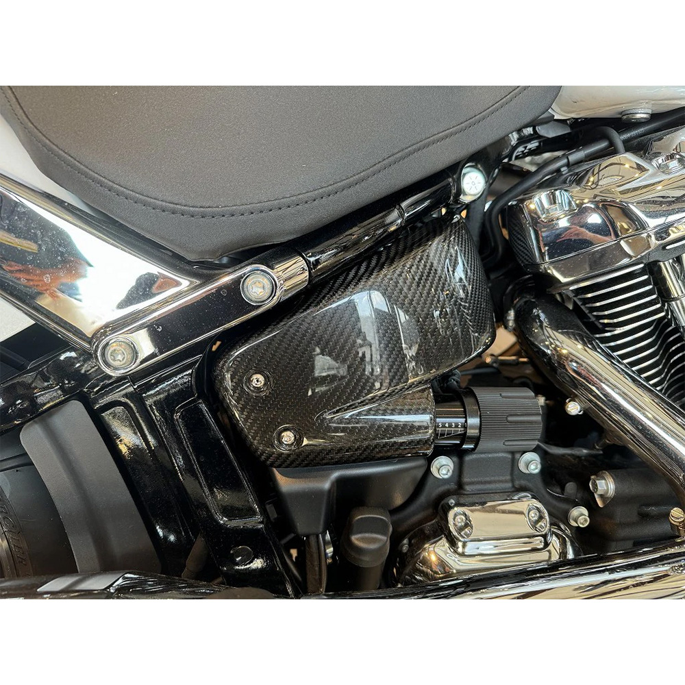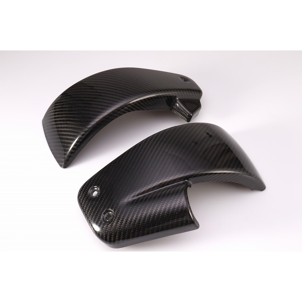 2018年以降、M8ソフテイル専用のドライカーボンサイドカバーです。 ・航空機などにも使われているプリプレグ(炭素繊維に樹脂を含浸させたシート状のもの)を使用し、バキュームパッキング処理し、オートクレーブで焼き上げる ドライカーボン製法を採用しております。 |