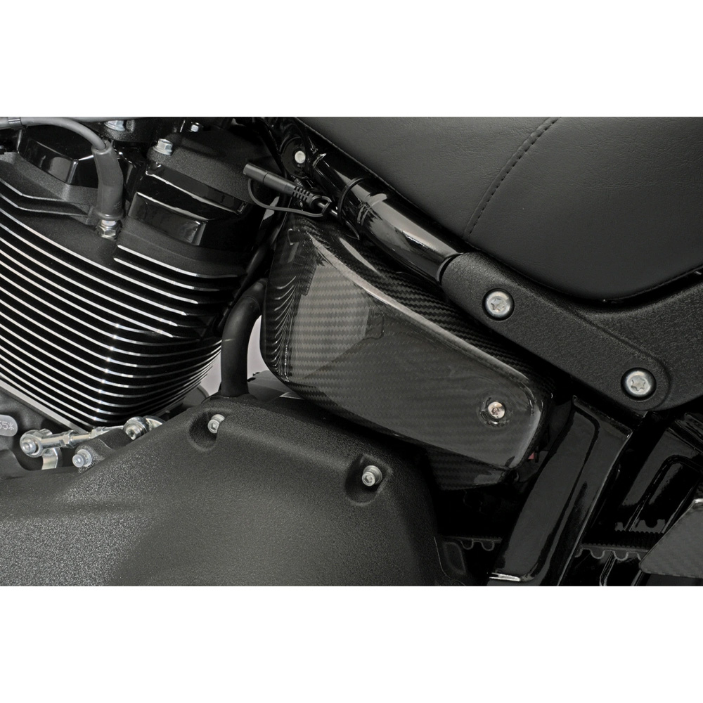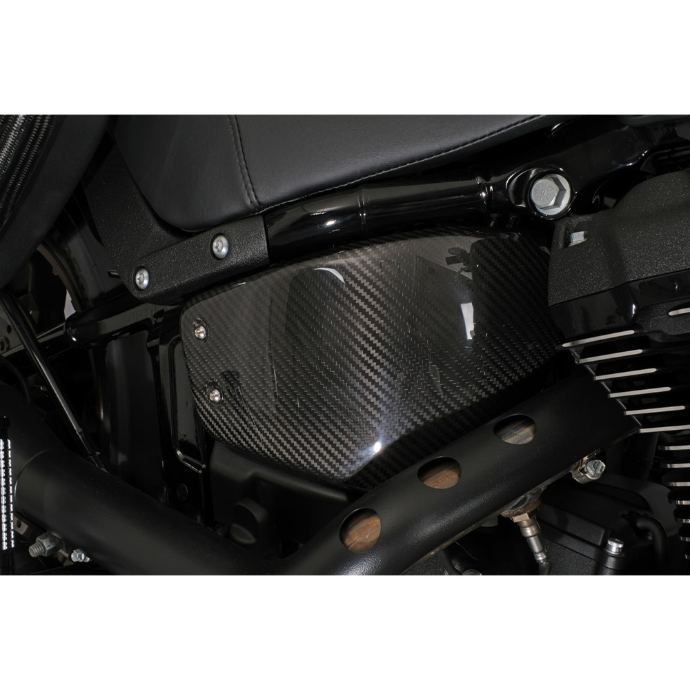 2018年以降、M8ソフテイル専用のドライカーボンサイドカバーです。 ・航空機などにも使われているプリプレグ(炭素繊維に樹脂を含浸させたシート状のもの)を使用し、バキュームパッキング処理し、オートクレーブで焼き上げる ドライカーボン製法を採用しております。 |