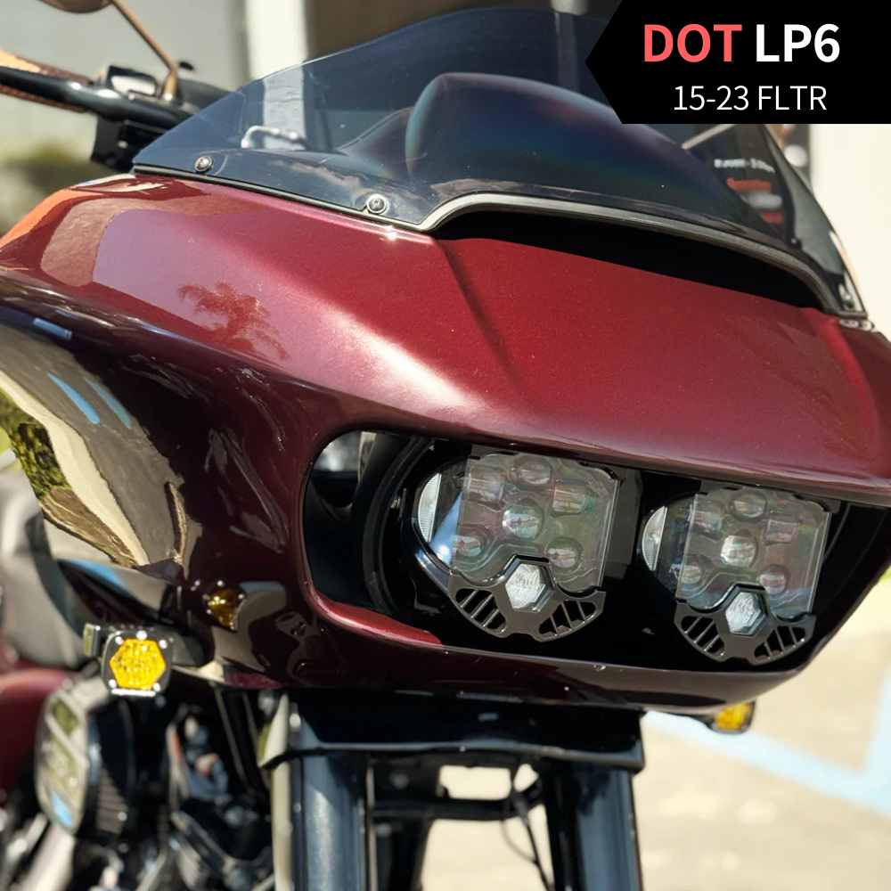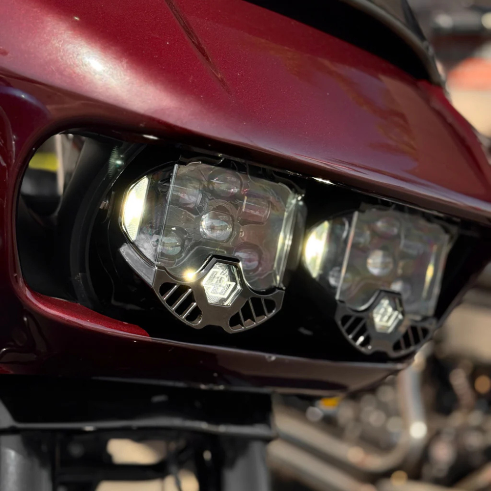 2015年~2023年式 ロードグライドに、Baja Designs製 DOT LP6 LEDヘッドライトを装着する専用キットです。