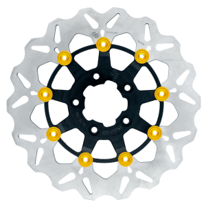 Waveデザインのフルフローティングブレーキディスク。インナーとボタンのカラーコーディネイトが可能で、お好みのスタイルを実現できます。 ・リサイクル材を使用せず、高炭素420ステンレス鋼のバージン材を使用。これにより耐久性と熱安定性が向上し、長期間の使用でも性能を維持します。 |