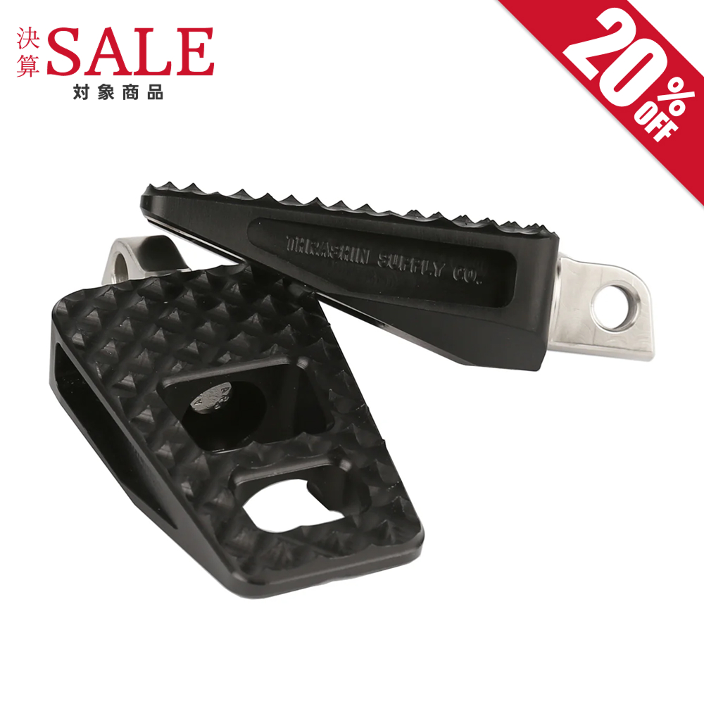 ・2.25″、ワイドサイズのテーパードフットペグです。 ・グリップ面に施された加工により、滑りを防ぎます。 ・耐食性の高い6061アルミニウム製です。 ・仕上がりはブラックです。 ・商品はペア売りです。
