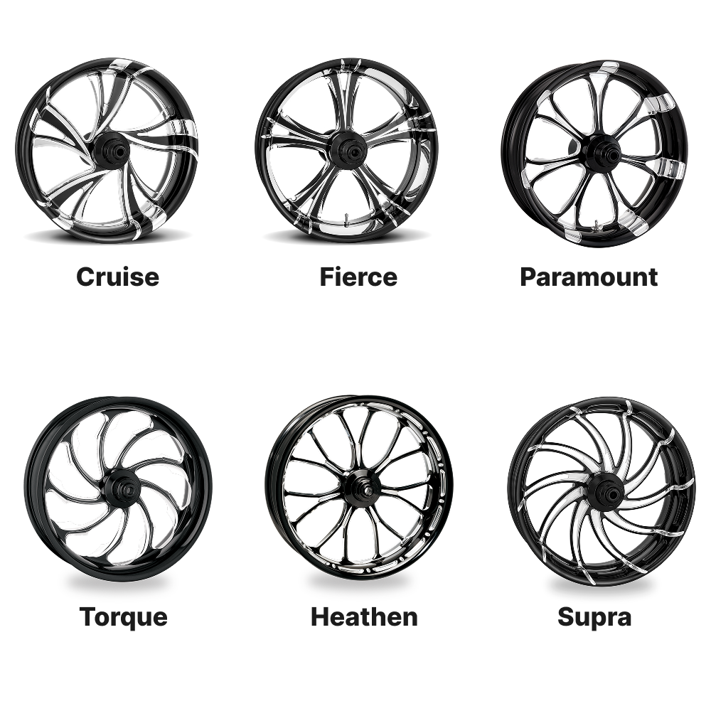 2018年以降M8ブレイクアウトに適合する、パフォーマンスマシンホイール一覧です。 ・こちらのページはプラチナカット仕上がりのみになります。クロムは関連商品よりご覧ください。 ※フロントホイールのブレーキローター用のボルトサークルは3.25″(82.55㎜)になります。ボルトサークルがそれよりも大きいツーリングCVOなどの純正ローターは使用できません。 お見積り・ご注文の際は ・車種・年式・ABSの有無と、ご希望のフロント or リア・ホイールのサイズ、デザイン、仕上がりをご確認ください。 関連商品