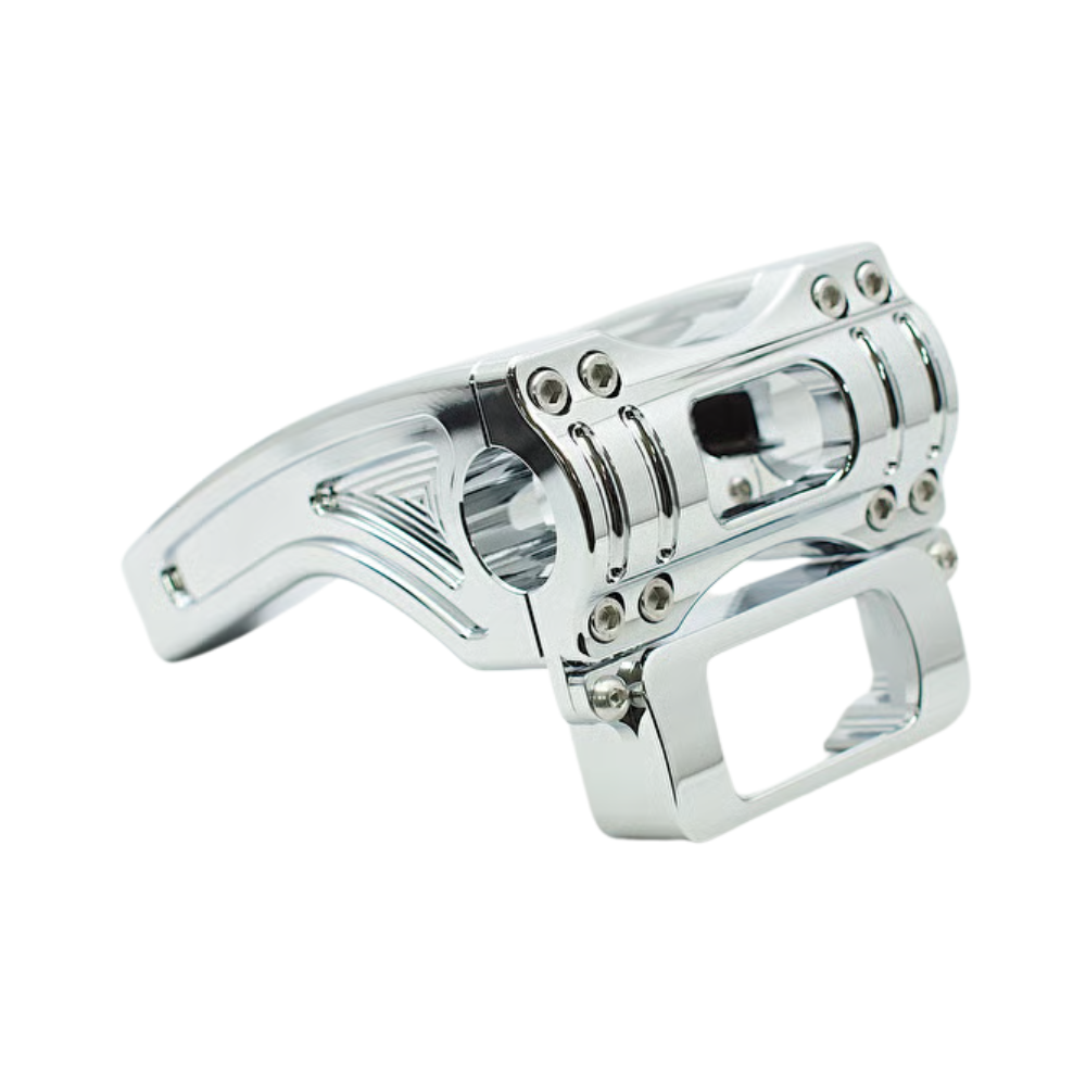 ライディングポジションの最適化に貢献し、デジタルタイプのスピードメーターを装着可能です。アルミ削り出しによる高級感のある仕上がりです。