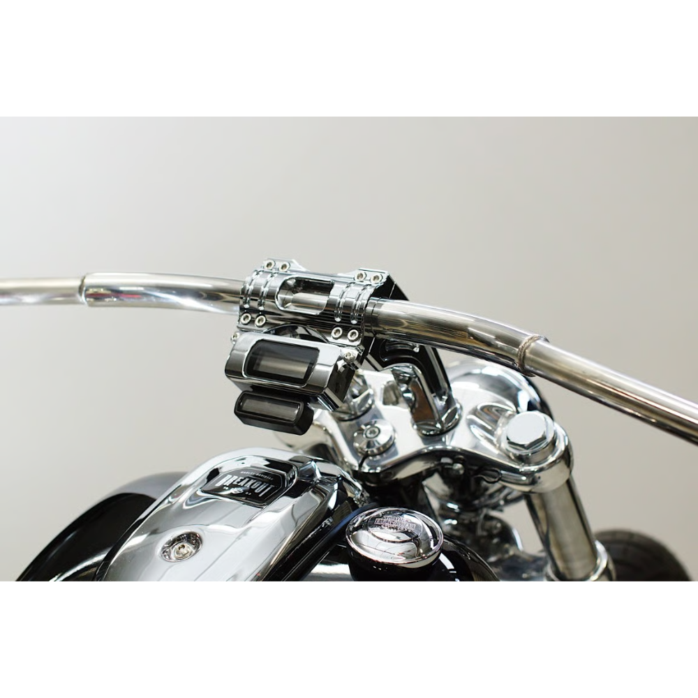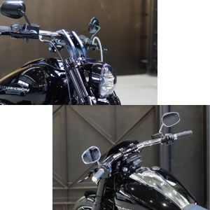 ソフテイルモデル対応のデジタルメーターマウント付き6.5″プルバックライザーです。