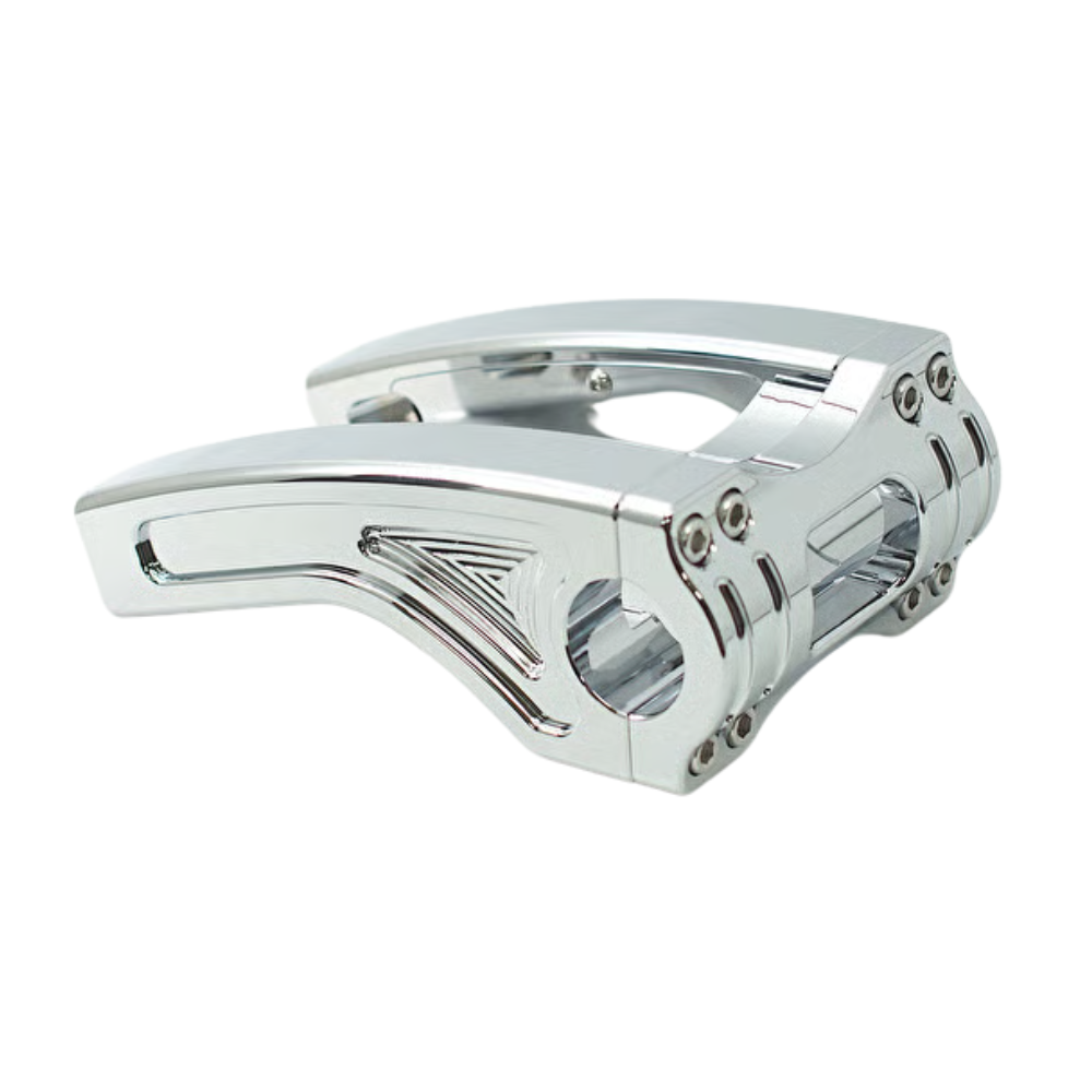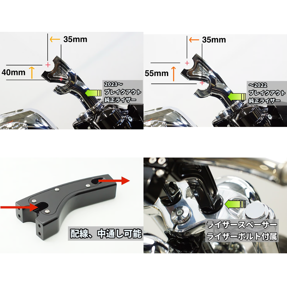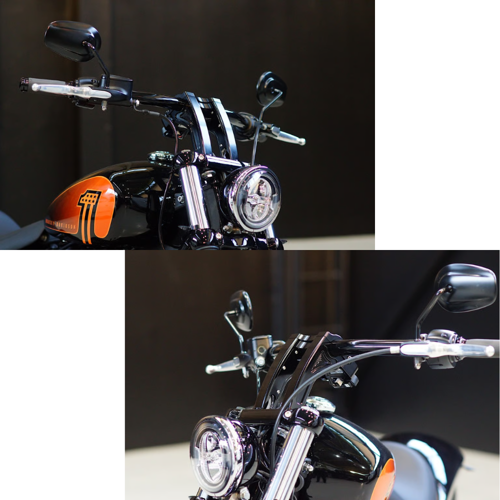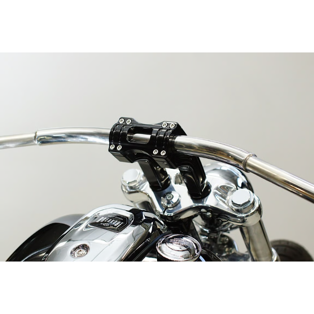 ライディングポジションの最適化に貢献し、アルミ削り出しによる高級感のある仕上がりで、フロント周りをスタイリッシュに演出します。
