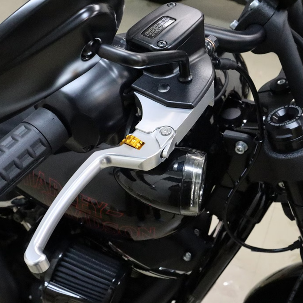 48段階アジャスター・5色のカラーを組み合わせ可能な、2025年以降のM8ソフテイル対応アジャスタブルレバーセットです。