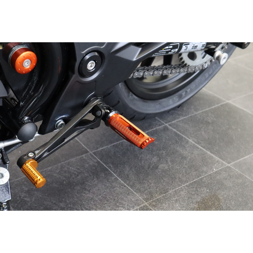 スポーティな操作性と高いグリップ力を実現する、X350用レーシングタイプのフットペグです。 ・高強度アルミニウム合金(A6061-T6)を使用したビレットアルミニウム製。 ※X350専用設計です。X500には取り付けできません。 関連商品