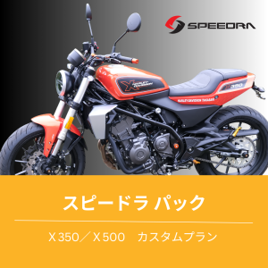 X350 , X500 専用カスタムプラン。スピードラで揃えたカスタムパックのご紹介です。 ・人気アイテムをカテゴリ別にピックアップしました。 ※本ページにはX350用とX500用の商品が含まれています。ご購入の際は、必ず各商品の適合車種をご確認ください。 |
